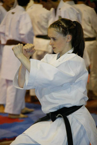 I (Hollie) was the last one to be called up in my section. I was just as nervous as I had been on the first day. The Italian who I was joint first with performed a very good Kata. She scored 25.0. After doing my Kata I felt I performed very well and when my scores went up, I had scored 25.2, so I was now WORLD CHAMPION!! I was absolutely thrilled and really happy.