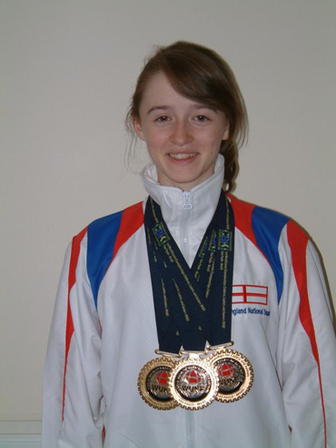 Soon after this the female 15-17 years open weight team fighting was called. Unfortunately, the team captain had to pull out due to an injury and as I was the reserve I had to jump in. We were against a very strong Brazilian team. The first fight England won, although we lost the second fight. I was the third fighter, so it rested on me whether we became World Champions or not. My fight got to 5-5 and the next to score a point won. However, we both threw punches at the same time...the adrenaline kicked in as the judges had to decide whose punch scored first. I kept hoping it was me. The referee then put his hand up to give the point, the adrenaline was incredible, and then the referee gave me the point!! This meant I had helped to win the Gold Medal for our team!!