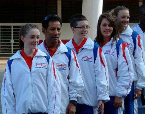 At 3pm, all the sections had finished for the day, so the World Union of Karate Federation (WUKF) officials decided to start the opening ceremony. All the countries paraded in with their competitors and flags. However, England took their own formation, and instead of walking in, in a straight line, we had four people on the older ones shoulders in a square formation and the rest under a giant England flag which was being held by the people on the shoulders. It was a very proud moment for all of us.